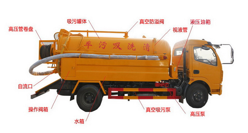 吸污部分配置:吸污罐采用6mm武鋼碳鋼制作,容積8方,帶視污窗,安裝有防溢閥,SK-12水環(huán)式真空泵(選裝油泵),帶8米吸污鋼絲橡膠管,罐尾配150mm排污球閥,直徑100mm進(jìn)料口一個(gè),罐體帶液壓舉升系統(tǒng),后蓋液壓打開(kāi)、關(guān)閉,帶自卸功能,可進(jìn)行加壓強(qiáng)排,罐體內(nèi)帶隔襯板,防止吸污罐體變形。